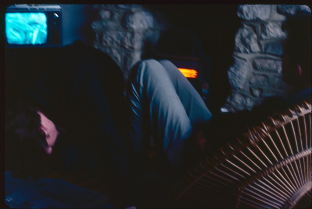 I learned by trial and error, shooting Kodachrome 25 indoors without flash, as in this image of my friends watching TV in a very chilly rented cottage on the Cowley marshes. The photo is murky, and has very little depth of field, but it says something of those days in rented accommodation, where life often seemed confined between black-and-white TV screens and proximity to the gas or electric fire.