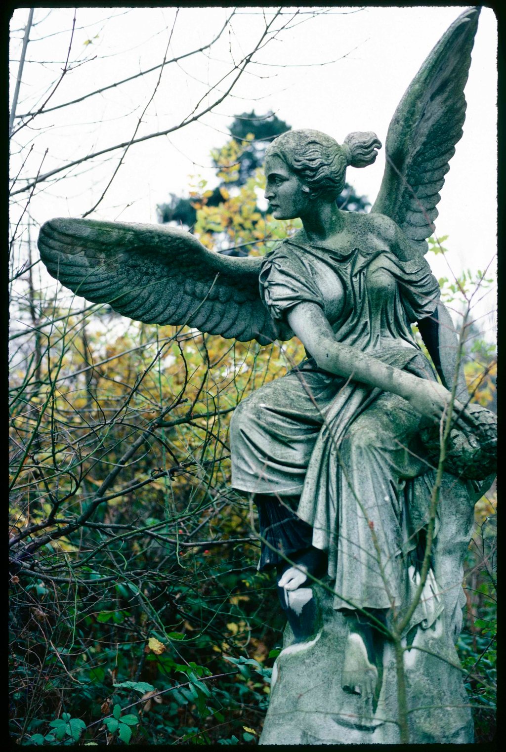 A resolution, then, to wander and record in the blind belief that slow film and a sharp lens, and a straightforward setting of the subject in the frame, would yield social meaning; also that there were signs scattered about the city to be read and, when combined, decoded. The stern-eyed angel from the Great Northern London Cemetery could stand as the avatar of this unyielding resolution of the will, which undermined resolution of the image.