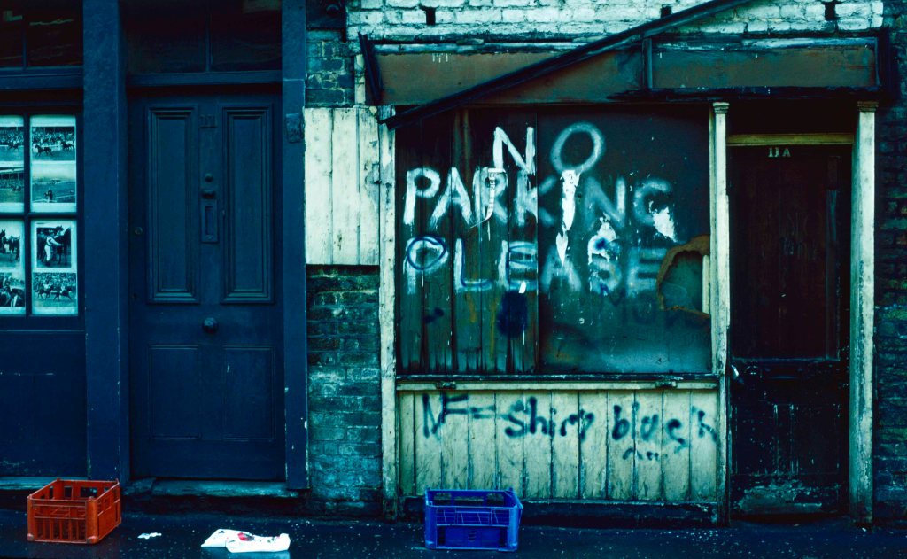 Of course, in the decades since, London has become a gigantic engine of financial and asset-price speculation, of money-laundering and grovelling service to the global super-rich. Yet, outside of its bland, polished enclaves—‘that area of London where land is measured in banknotes’, as Nadar put it long ago, writing of a fashionable district in which photographic studios minted money—lie swathes of deprived, neglected and decaying neighbourhoods.[1] Earlier this month on a chilly day in Peckham, I took this photograph with a phone camera, using its default settings.