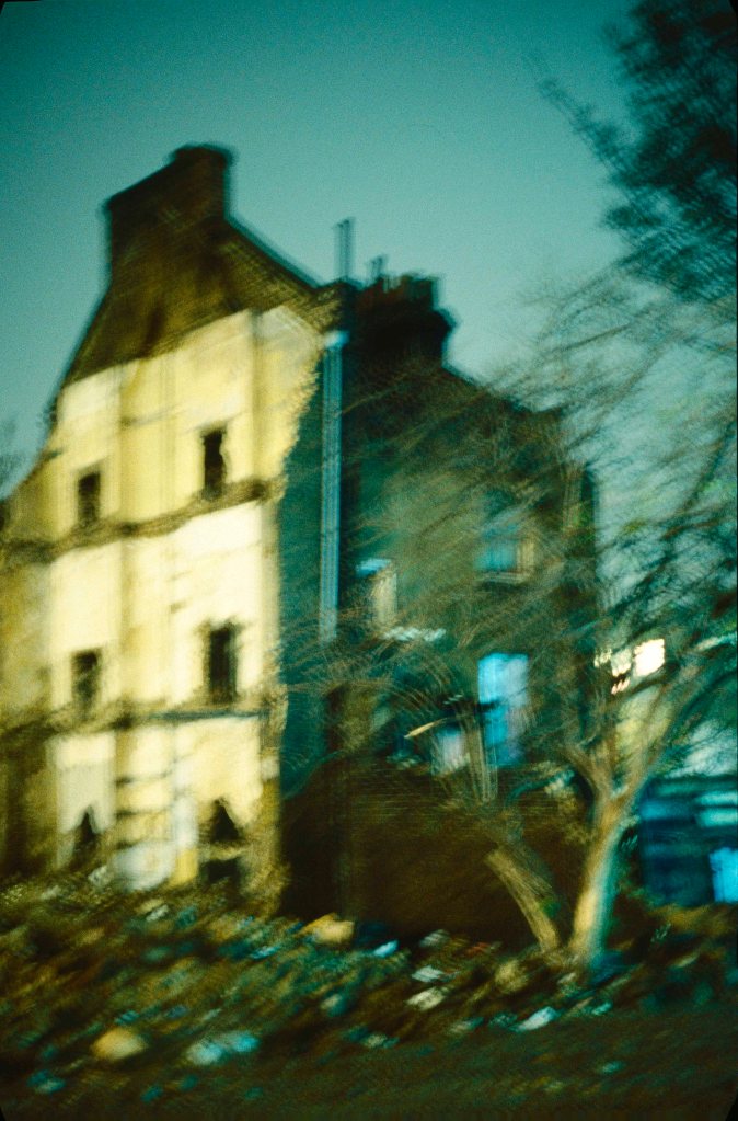 Obsessed with getting the best quality possible on 35mm film, I stubbornly continued to use Kodachrome 25 in the winter light. Since the film is very slow, this meant using wide apertures (often my lens was set to its maximum, 1.7) and long exposures. Stubborn, too, in my supposed ability to hold the camera steady, elbows braced against my sides, or better my whole body braced against a wall or lamppost. And since that was often not enough, I would under-expose to get a darkened something onto film, rather than nothing.