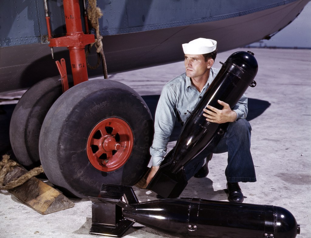 - J.D. Estes at the Naval Air Base, Corpus Christi, Texas. August 1942. 4×5 Kodachrome transparency by Howard Hollem