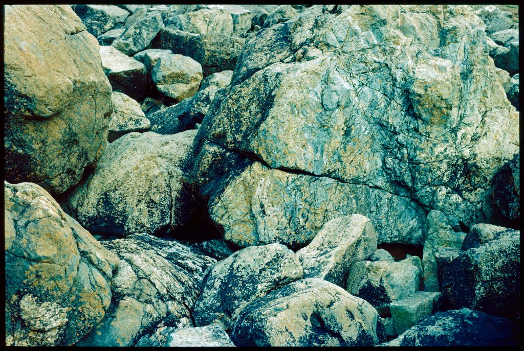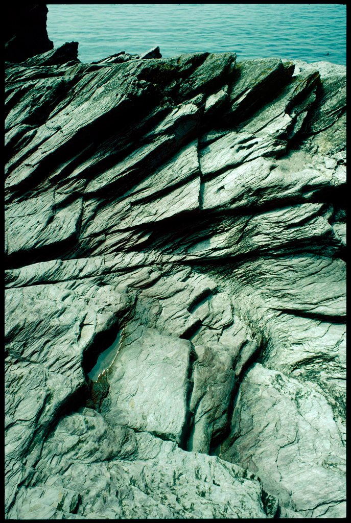 Later still, when I went back to St Ives with a camera, I thought I could see the colours and lines of paintings by Ben Nicholson or Willie Barns-Graham in rocks and stones. I tried to make abstract compositions within the 35mm frame, freezing a particular configuration of rock, sand, water and light so that it made sense for me. I was captured, not just by the act of framing these scenes, but by the delayed wonder of holding the resulting slides up to the light, some weeks later, the film transforming present rays into past upon the retina, so that vanished moments sprang into strange life—fixed and high contrast—a little more and less than real.