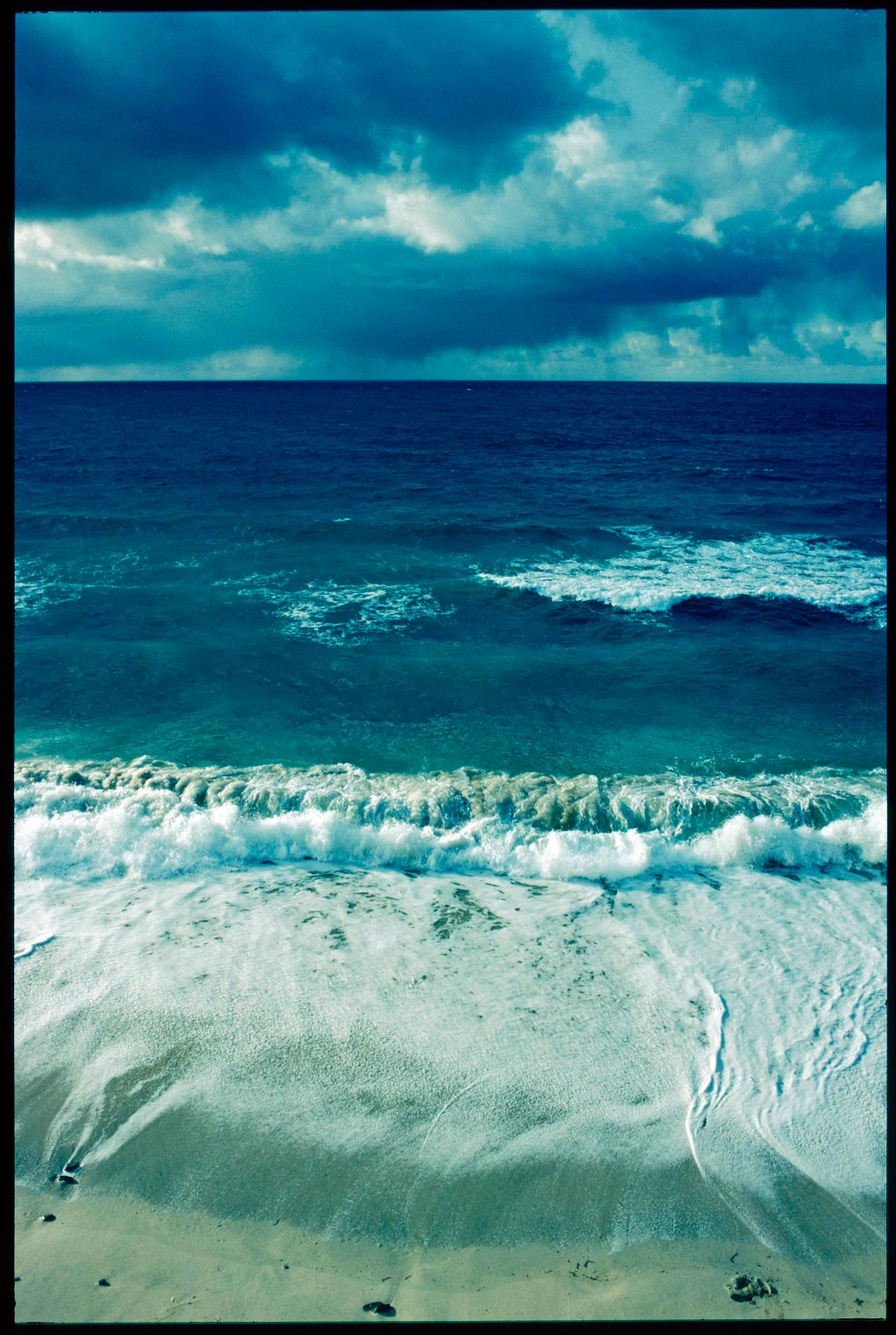 I was held, too, by the camera’s strange rendering of time which highlights the combination of an instant and a place under a singular and transient light—in the patterns made, for instance, by a thin sheet of water being blown across the sand. Different lengths of moment may be held within the same image, for the camera can freeze water into pin-sharp droplets at 1/8000th second, or at longer exposures let it flow like long strands of hair, but either way, in a frozen architecture, the mobile and immobile meet.