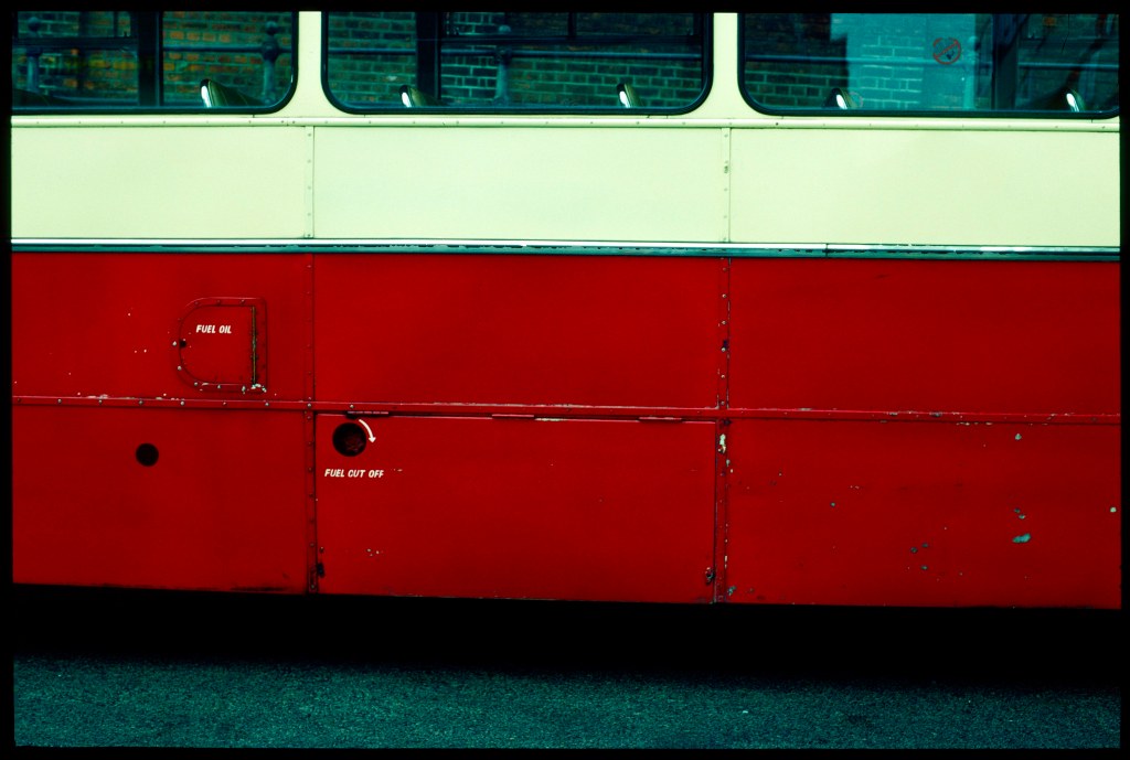 This photograph of a Reading bus brings back the crude, dilapidated, diesel-filled beasts that were in use during my childhood. Their dull and grubby interiors, decorated with ‘No Spitting’ notices, were frequently of a piece with the view through the glass. As a boy, as my bus would spend what felt like hours idling at its stop, I would lean my head against the windowpane, feeling the rhythm made by the tiny bumps of each piston explosion. This juddering of pane on scalp was sometimes complemented later in the journey by the joy (for us children on the upper deck), as the bus swept so close to trees that their branches would clatter against the windows. The joy, near the end of our long commute, of unruly nature, modest speed, and mild threat.