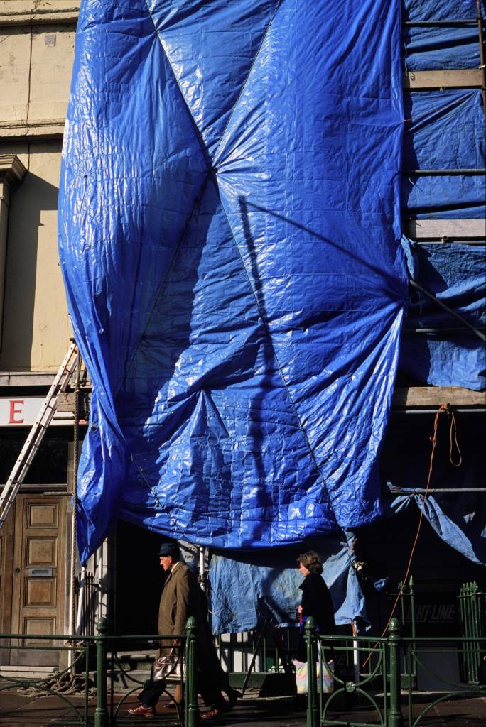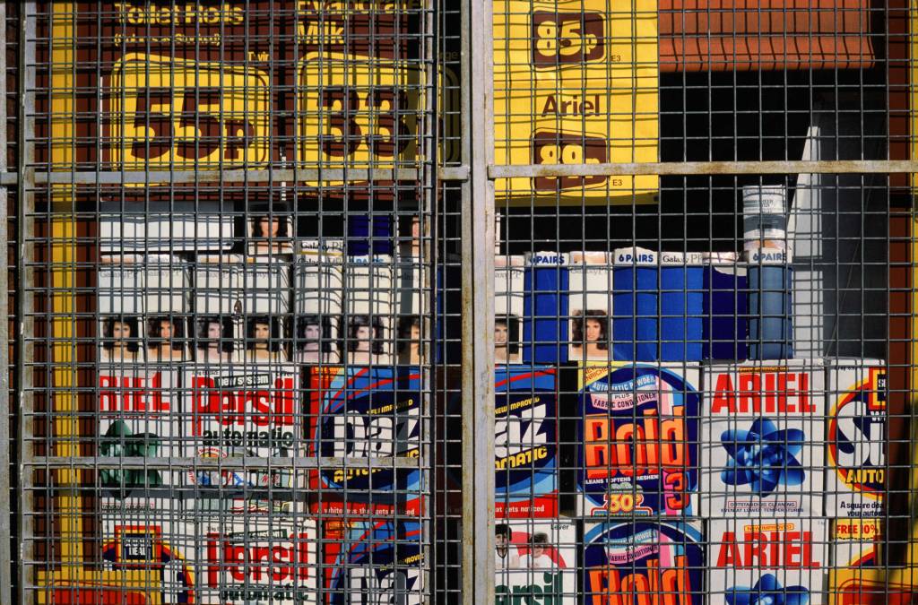 I was attracted to colour photography because it was such a prominent language of commerce, advertising and state regulation, and I sought to use its means to describe what they did to the environment. All those constant impositions of order and regulation—intrinsically ugly and alienating—were just as constantly met with accidents, with unintended clashes between the efforts of different regulators and propagandists, and a myriad of alienated acts of rule-breaking—graffiti, littering, vandalism, trespass and theft. The precise alignment of the subject with the frame was one way to cast mockery on the results.