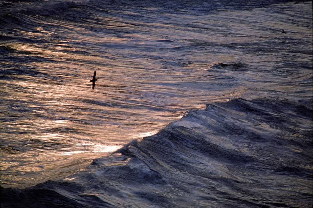 As the sun lowered, the warming colours of the sky were cast upon the water, and gulls flew low over the waves, while camera and film fixed the ever-shifting sea.
