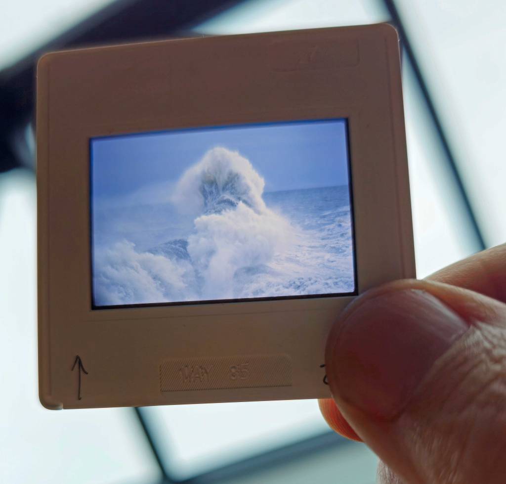 Postcards confine the sea within a small span, and the 35mm slide in even smaller dimensions, to the extent that dealing with the sublime in such a tiny format brings content and medium into a paradoxical tension.