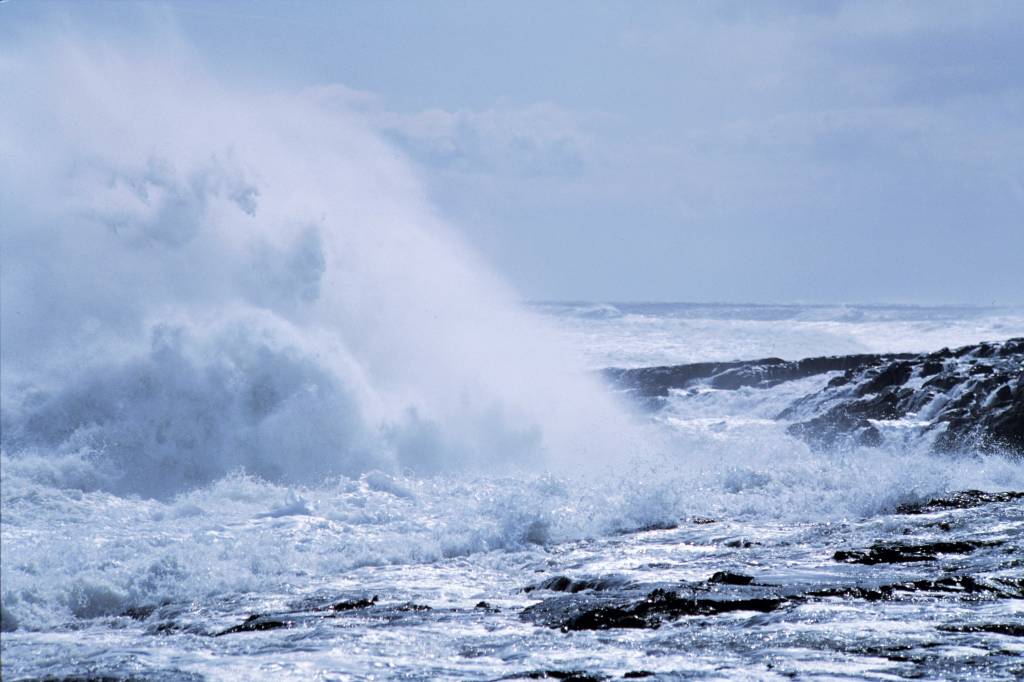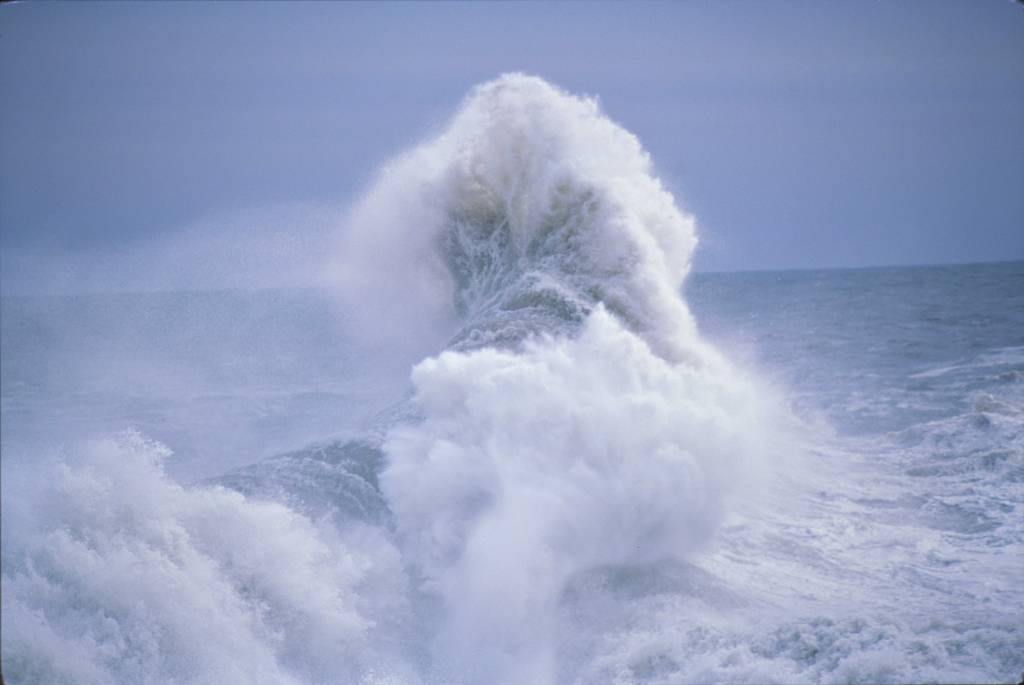 The sea was wild that late spring month, and I took photographs by standing as close to its edge as I could, on beaches or high rocks. The resulting images could be seen through a conventional Burkean idea of the sublime, in which the viewing of something dangerous from a position of comparative safety offers a feeling of ‘delightful horror’ but also a reminder of one’s place in the natural hierarchical order. Here—and I felt this at the time, awed by the sight and sound of the waves, and the buffeting of the wind, although all that had to be temporarily put aside in making calculations of framing, shutter speed and exposure—of the faint and fragile power of a scrap of flesh when set against the force of the sea.