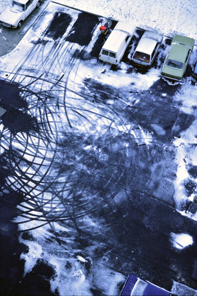 An immediate revelation was living with a view onto London from above, and onto a wide expanse of sky otherwise little seen but away from the picture windows, aspects of existence in the tower clearly told its inhabitants where they fell in the social hierarchy. An embattled borough council did little to maintain it, so that the block was grimy and infested. The heating ducts were reputed to be infested with Pharoah ants, and I marvelled at the size of the cockroaches I would catch in jam jars. The dimly lit lifts, lined with a grubby striated metallic veneer, were not to be trusted. Narrow and deep, they were designed to accommodate a coffin. Walking down the stairwell one day, I slowly followed a policeman who was noting down the particulars of gang graffiti. Outside, an unkempt playground was imprisoned behind a tall, grim chain-link fence. Residents walked out of the building onto a scorched and debris-strewn car park.
